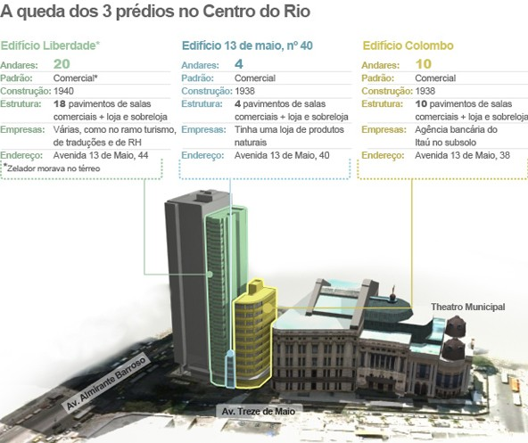Edifício Liberdade, Ed. 13 de Maio e Ed. Colombo no Centro do Rio de Janeiro. Desabamentos em 2012.